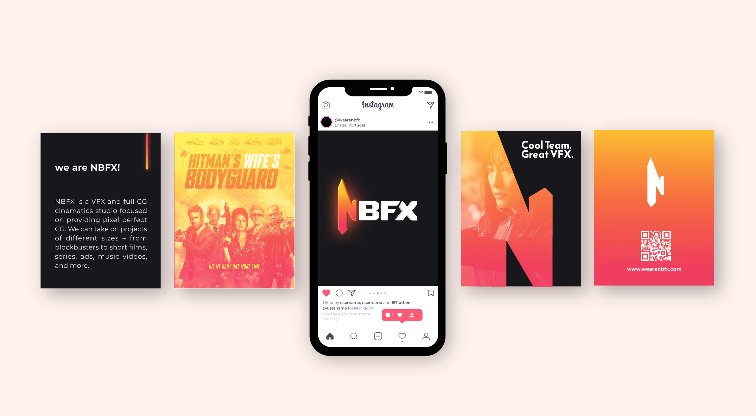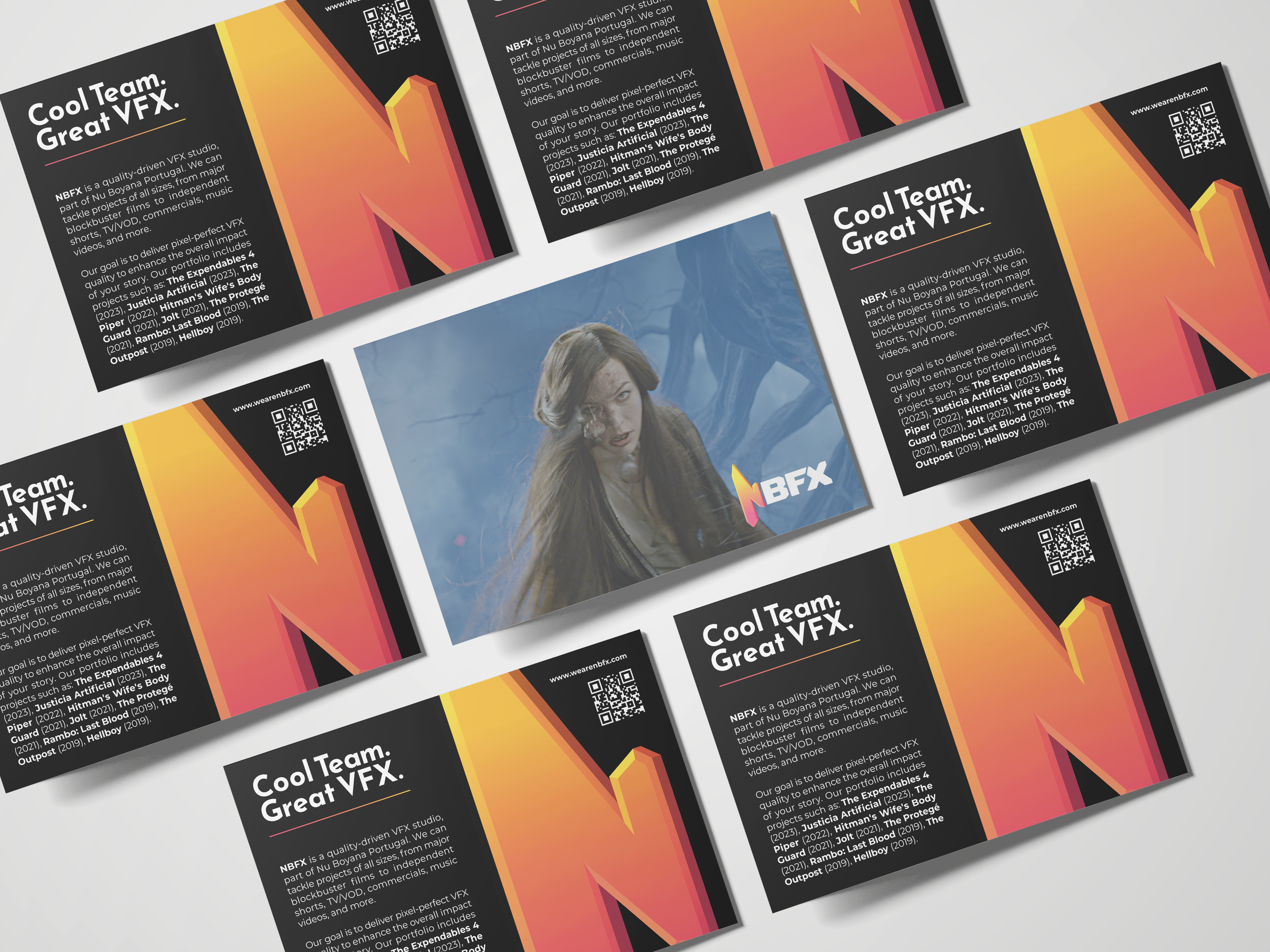 For NBFX, the logo had already been redesigned recently, so I started by creating a new brand styleguide with the existing material, but complementing it with a full visual identity. This brand allows more color and graphic elements, which I developed and used in various contexts (merchandising, logo animations, flyers and social media). Additionally, I did the 2023 showreel with their proof of work and “The Expend4bles” showreel.