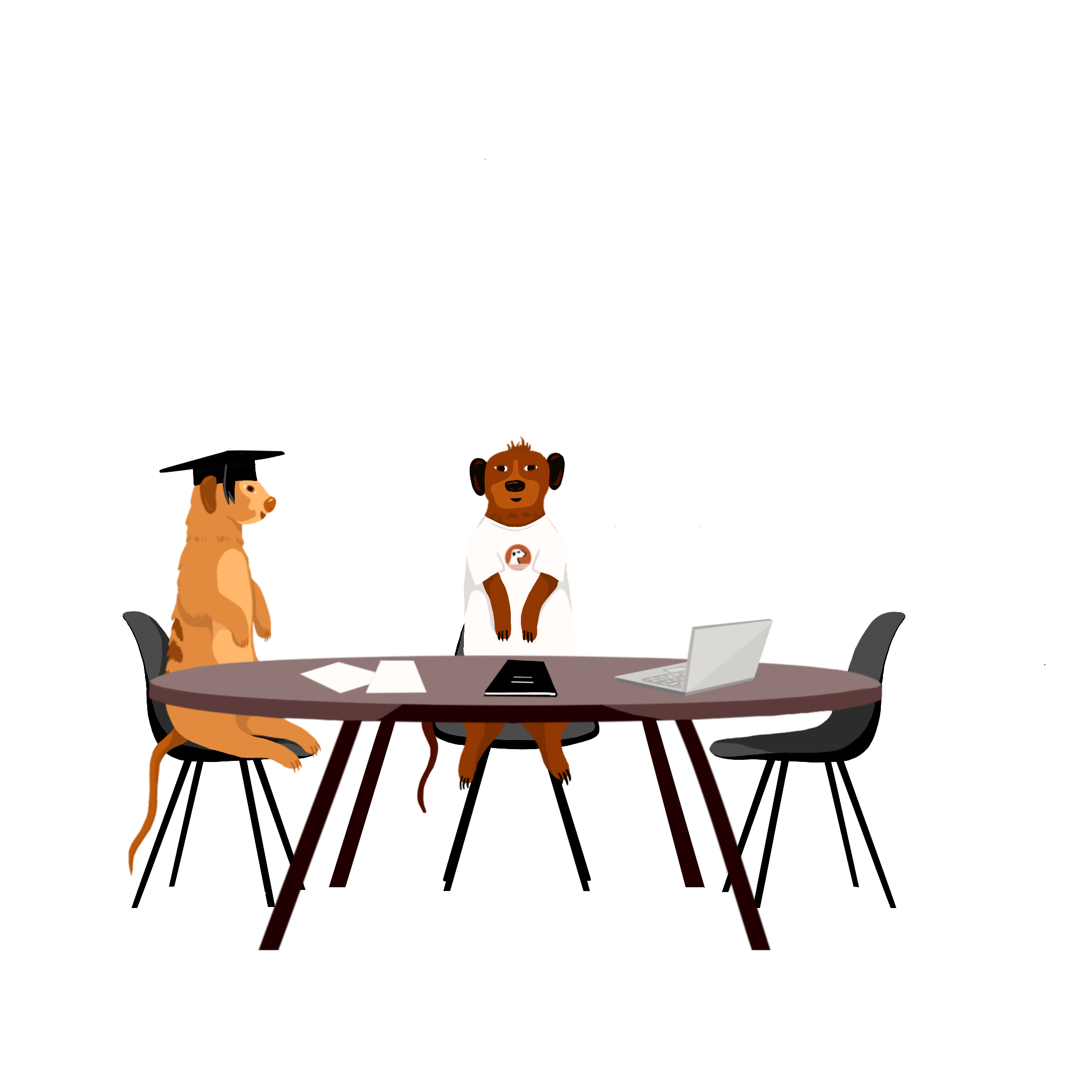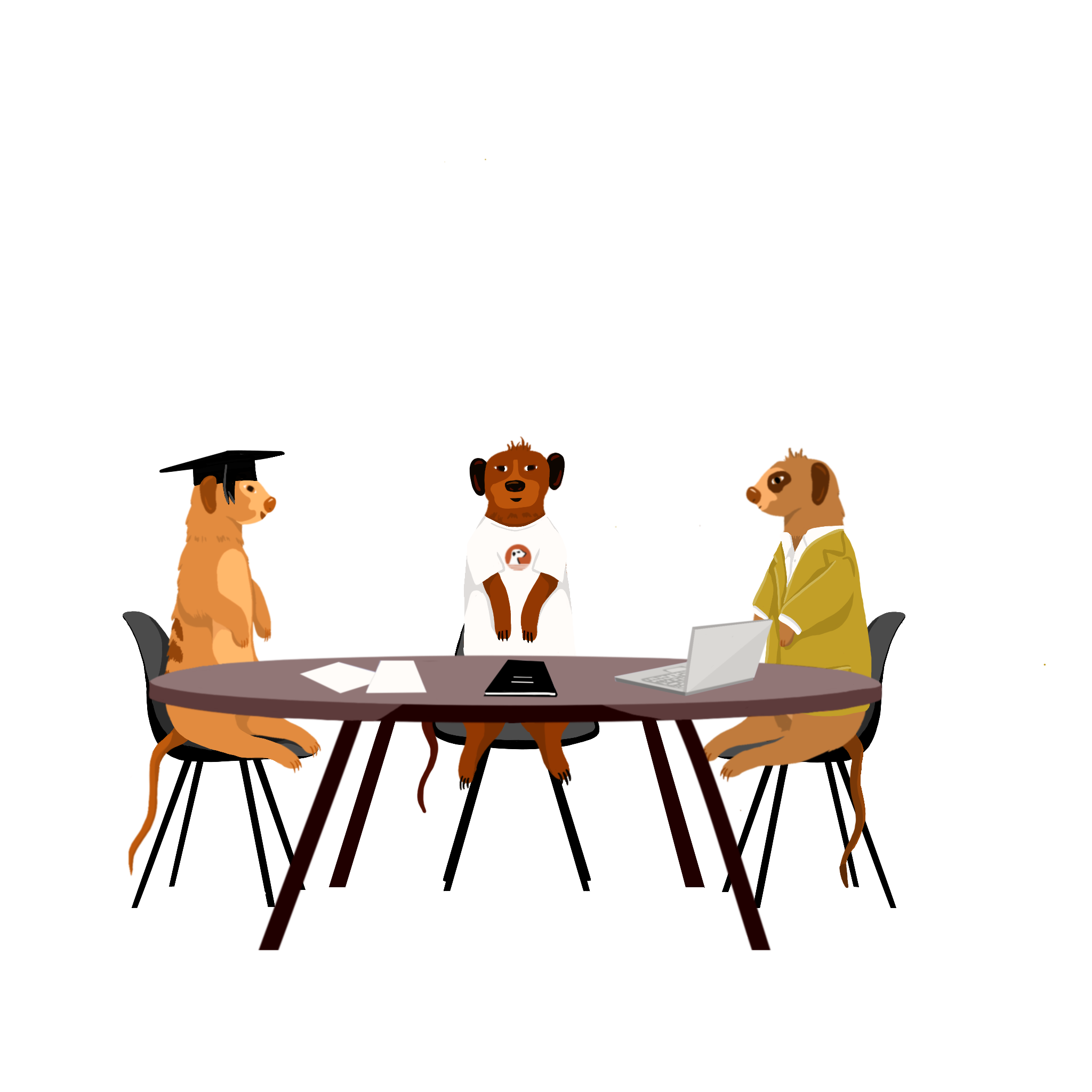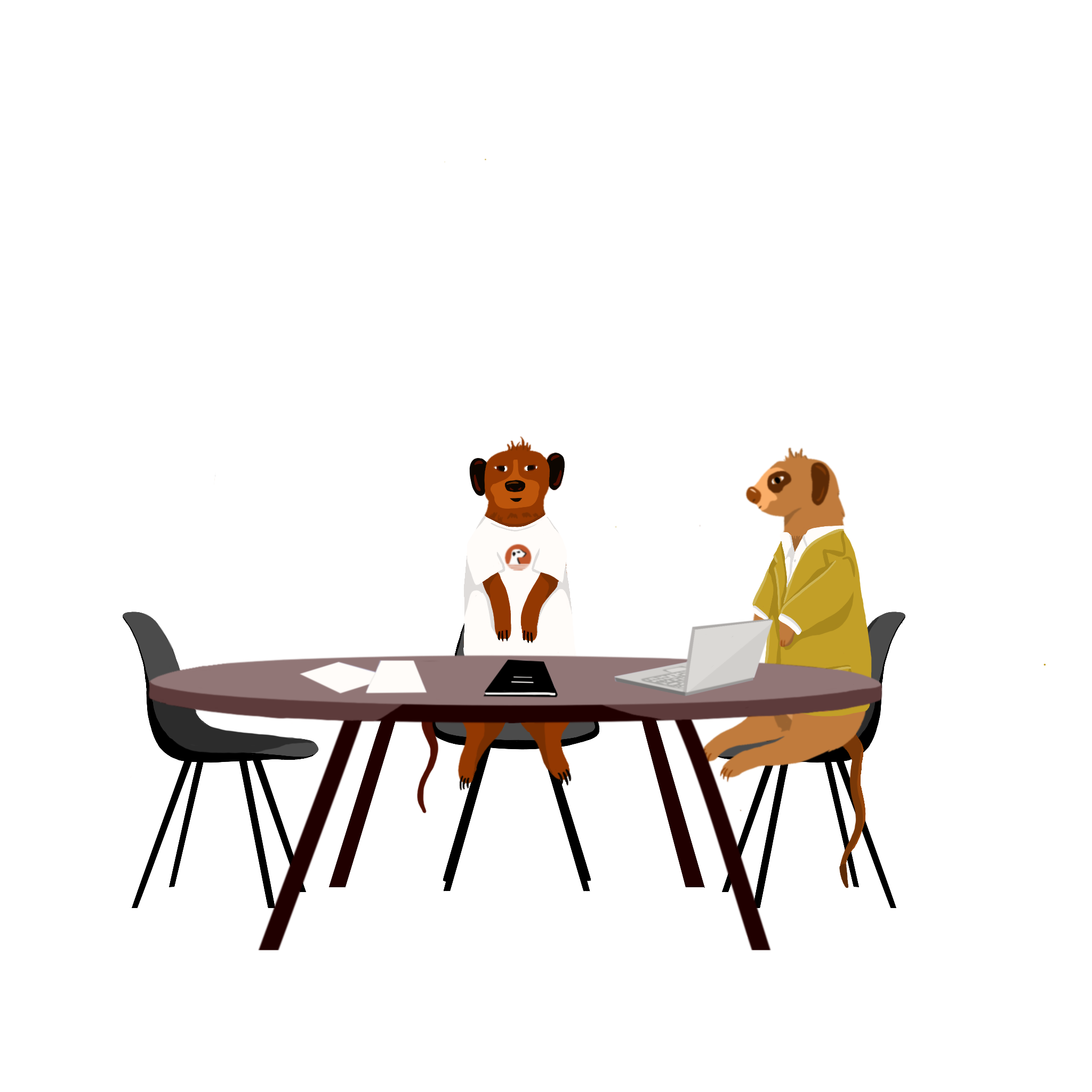The company’s name and philosophy were inspired by the meerkat community, and so the visual identity is directly linked to it. By following this main concept, I created visual representations of different meerkat characters, who personify the platform users, the partners and the people behind TeamOn.